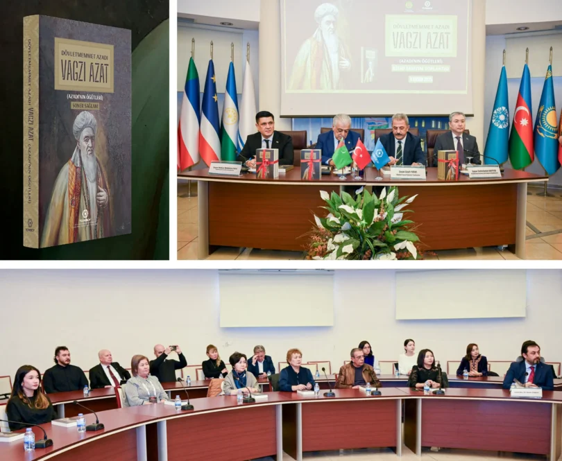 “Vagzy-Azat” adlı kitap dün Ankara’daki Uluslararası Türk Kültürü Teşkilatı (TÜRKSOY) Genel Sekreterliği’nde Türkçe olarak tanıtıldı. Kitap, seçkin Türkmen düşünür ve şair Dövletmammet Azadi’nin doğumunun 330. yıldönümü onuruna yayınlandı. “Türkmenistan: Altın Çağ” dergisinde yer alan habere göre, kitap, Türk edebiyatı alanında araştırmacı ve uzman olan Dr. Soner Sağlam tarafından yazılıp yayına hazırlandı. Bu yayın, Türkmen halkının manevi ve kültürel mirasının Türk dünyasında yaygınlaştırılmasına önemli bir katkı sağlıyor.