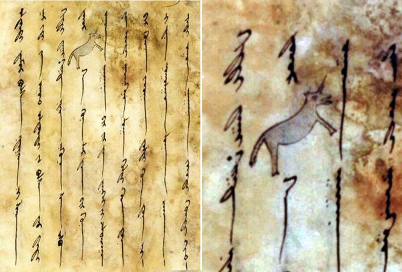 Uygur harfleri ile yazılmış Oğuz Kağan destanında bu hayvan, tek boynuzlu olarak resimlenmiştir.