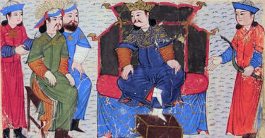 Oğuz Kağan’ın Bir Taht Üzerinde Türk usulü Bağdaş Oturuşu.
