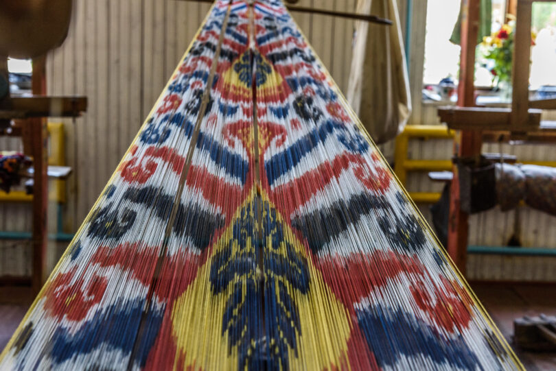 Margilan ipeği, parlak ikat desenleriyle ünlüdür ve bu desenler, Özbekistan’da ve sınırları dışında büyük popülerlik kazanmıştır. İkat tekniği, ilk olarak Endonezya’da geliştirilmiş bir yöntemdir ve kumaş dokunmadan önce dayanıklı boyama yapılarak karmaşık desenler oluşturulmasını sağlar. Bu teknik Özbekistan’da geliştirilmiş ve asırlardır nesilden nesile aktarılmaktadır. Margilan’ın bazı ikat ustaları, bu zanaatla dokuz veya on kuşaktır ilgileniyor ve büyük bir ustalıkla bağlama, boyama ve dokuma sanatını öğrenmişlerdir.