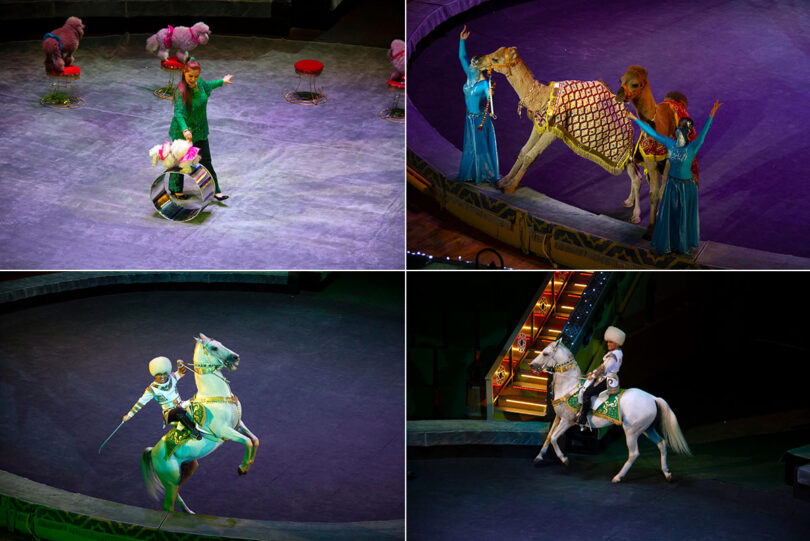 Sahneye çıkan bir diğer sevilen gösteri ise, Elmir ve Zaryana Goshayev’in pudelleriyle gerçekleştirilen “Kauçuk” numarasıydı. Üç jimnastikçi, izleyicilere inanılmaz bir esneklik gösterisi sundu.