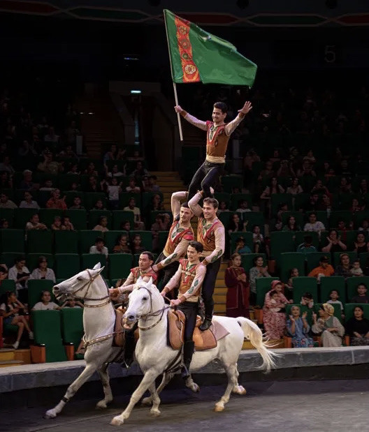 Türkmenistan Devlet Sirki, ulusal binicilik grupları, akrobatik gösteri sanatçıları ve dünyanın dört bir yanından egzotik hayvanların yer aldığı “Kanatlı Atlar” adlı yeni yıl programını açtı. Türkmenistan Kültür Bakanlığı basın servisinden yapılan açıklamaya göre, gösteriler 11 Ocak 2026 tarihine kadar her gün devam edecek.