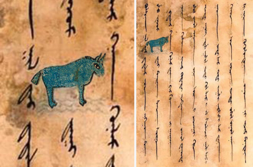 Türk mitlerinde “Kozmik Kağanlar” önemli bir yer tutar. Uygur yazmasında Oğuz, mavi renkli bir öküz olarak gösterilmiştir. Türk kozmoloji düşüncesinde mavi renk, göksel ve kutsal kişileri tanımlamak için kullanılan bir renk sembolizmidir. (Gök Oğuz) Oğuz Kağanın en eski görsel tasvirleri boynuzlu olarak resimlenmiştir.